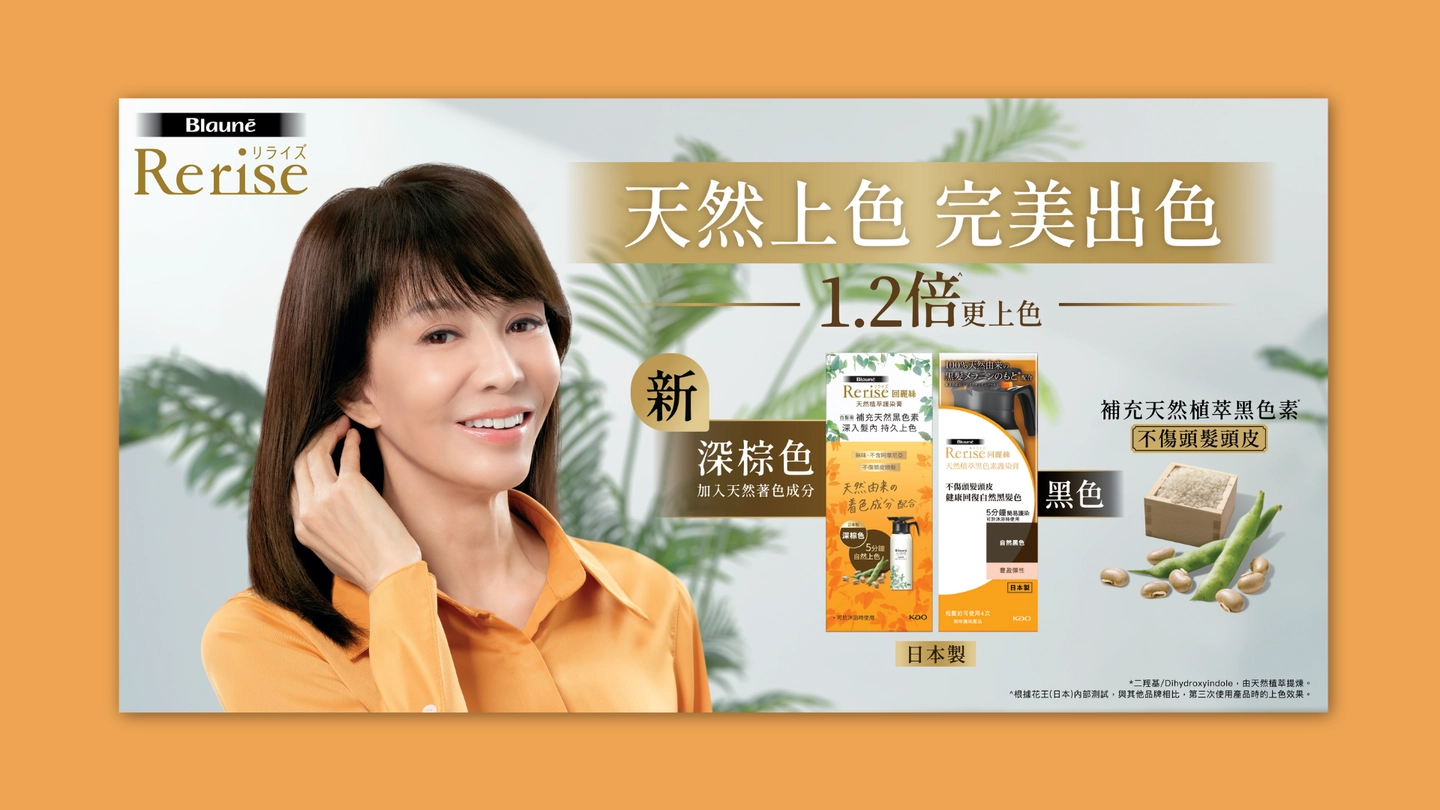 Rerise as a hair colour treatment product under Kao was targeting the matured market who also had health concerns over traditional hair dye that they are looking for natural hair colour treatment alternatives. Riding on the launch of new colour, Kao aimed to create awareness as well as reinforce their creditability.